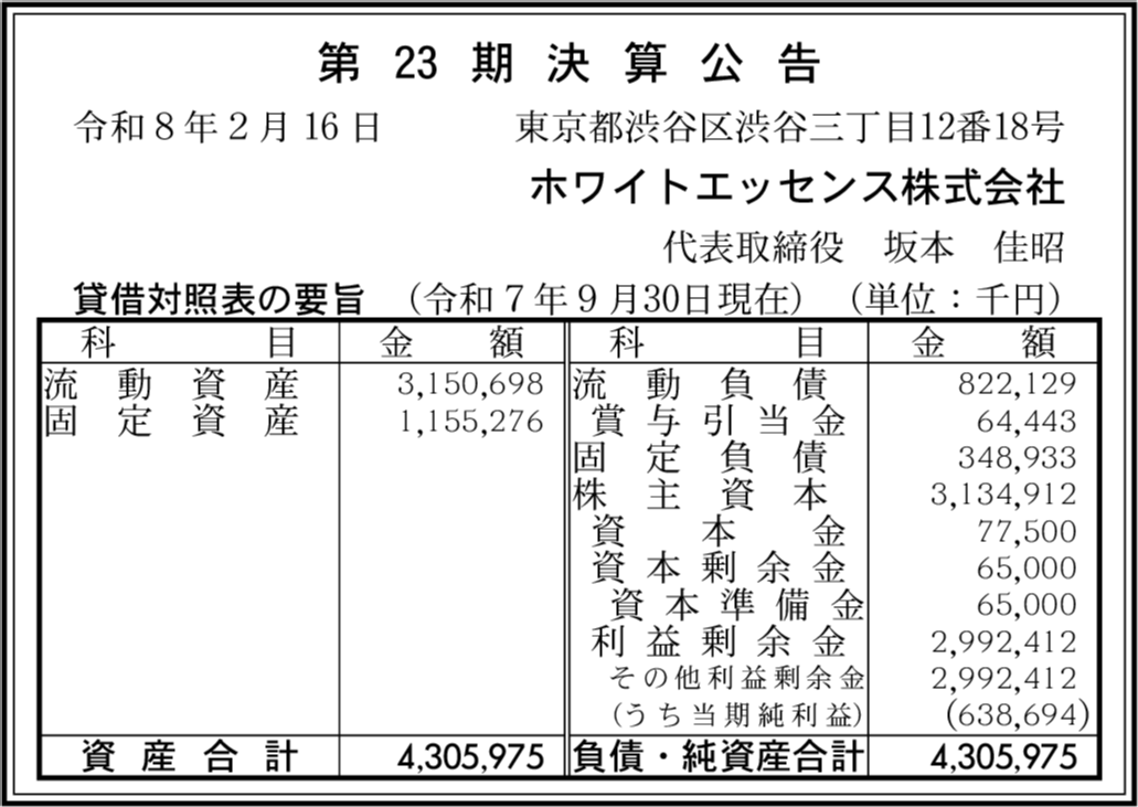 | 総資産 | 43億597万5,000円 (+16.14%) |