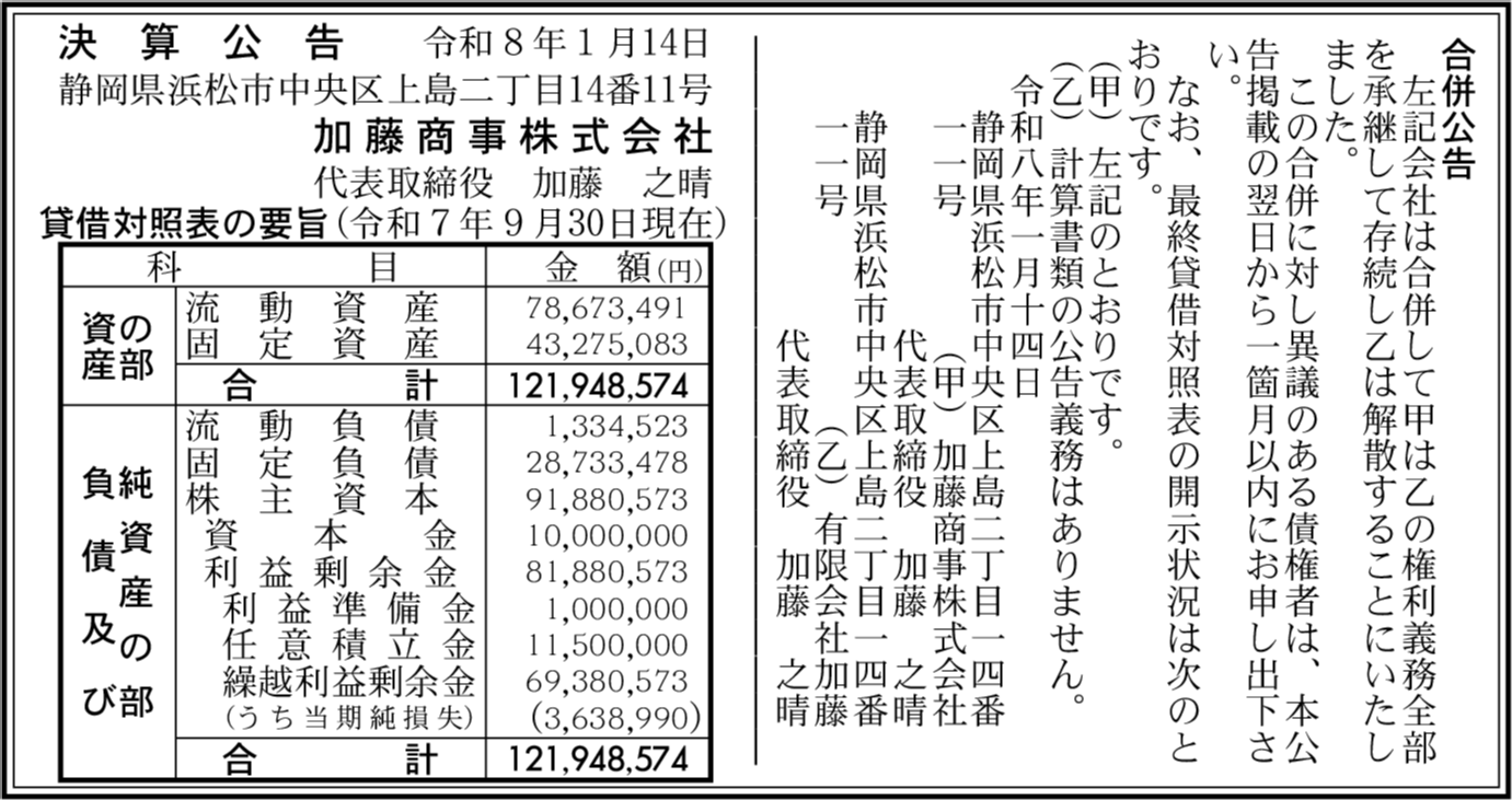 | 会社名 | 加藤商事株式会社 |