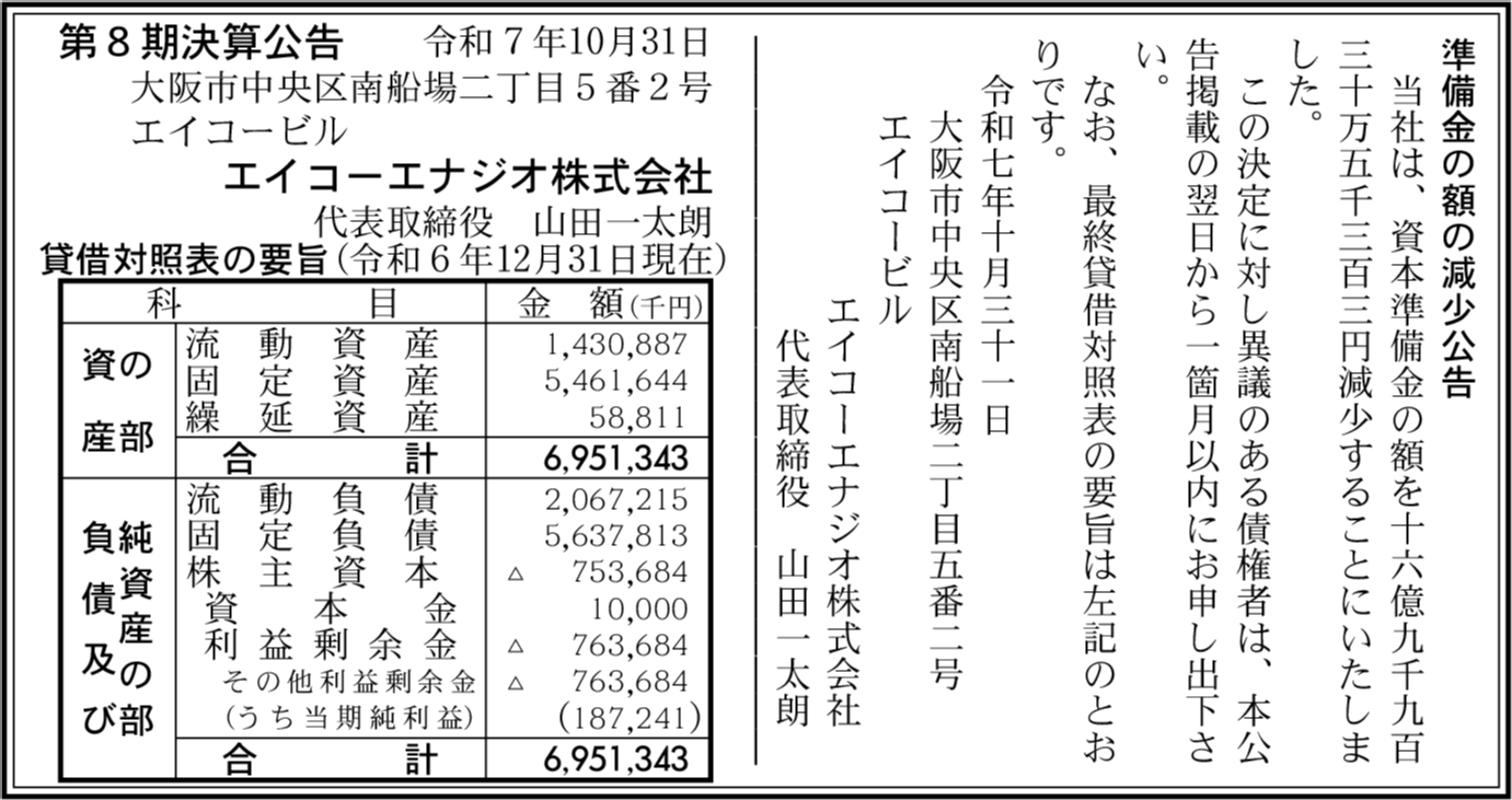 エイコーグループホールディングス株式会社閉鎖済み 大阪市北区 【2024年6月期】 |