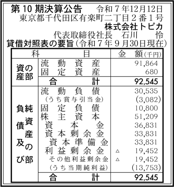 株式会社トピカ 東京都千代田区 |