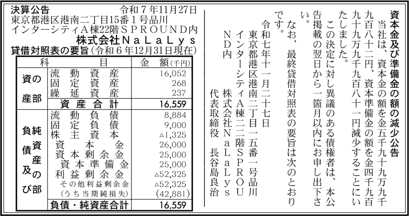 | 会社名 | 株式会社NaLaLys |