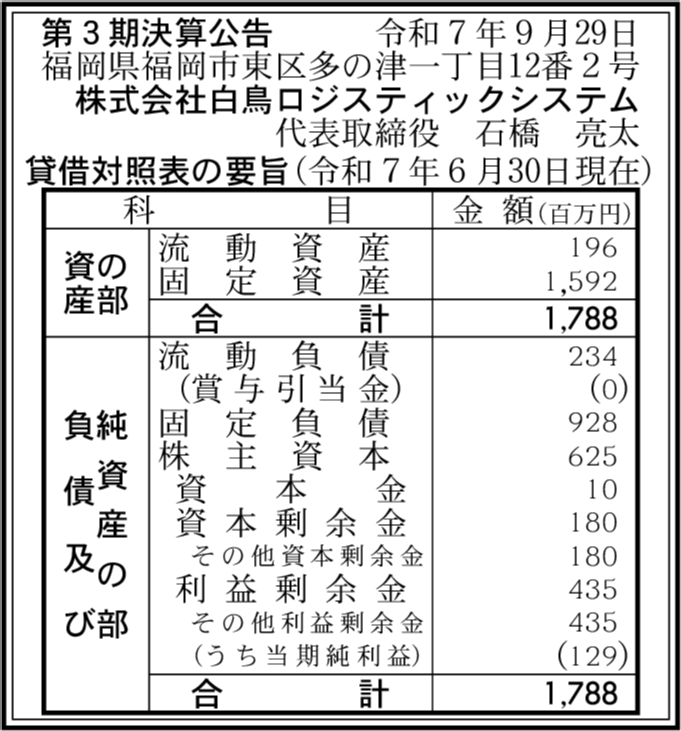 会社名 | 株式会社白鳥ロジスティックシステム |