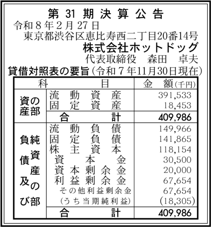 | 会社名 | 株式会社ホットドッグ |
