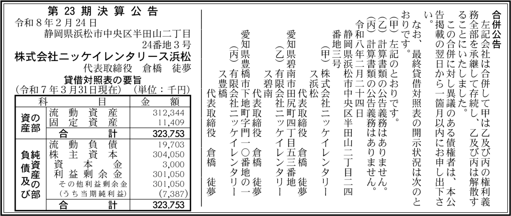有限会社ニッケイレンタリース豊田 愛知県豊田市 【2025年6月期】 |