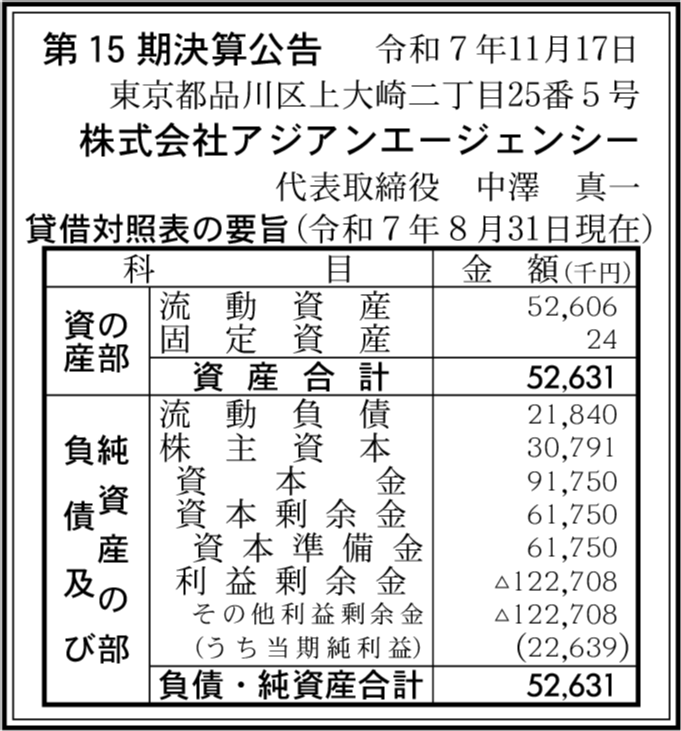 株式会社日本農業 東京都品川区 【2025年7月期】 |