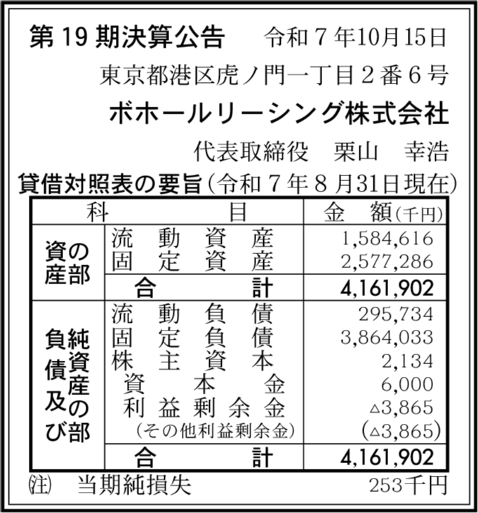 タタンリーシング1株式会社 東京都港区 【2025年8月期】 |
