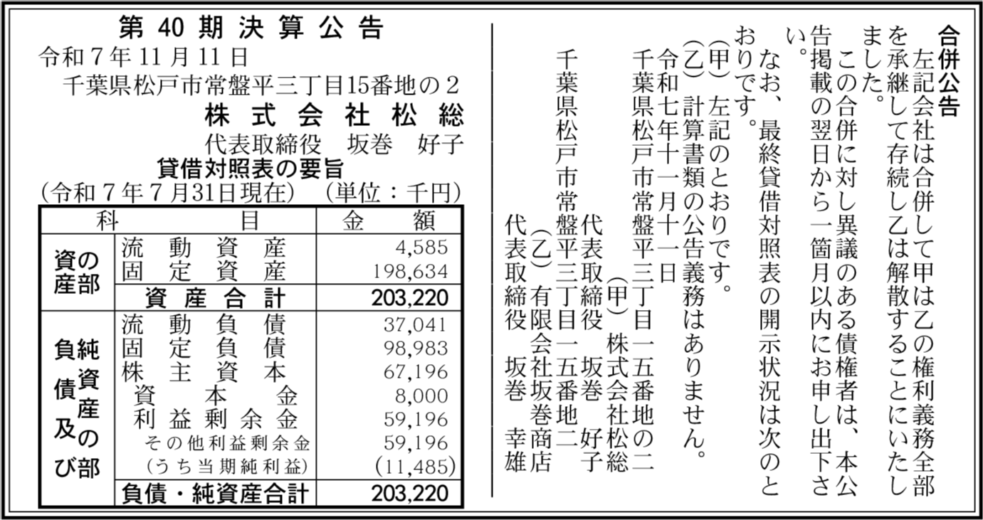 綜合パトロール株式会社閉鎖済み 千葉県松戸市 【2024年7月期】 |