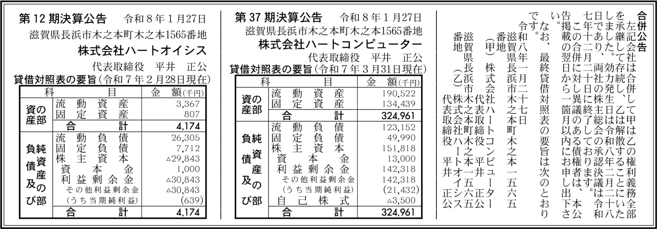 株式会社ハートコンピューター 滋賀県長浜市 【2025年3月期】 |