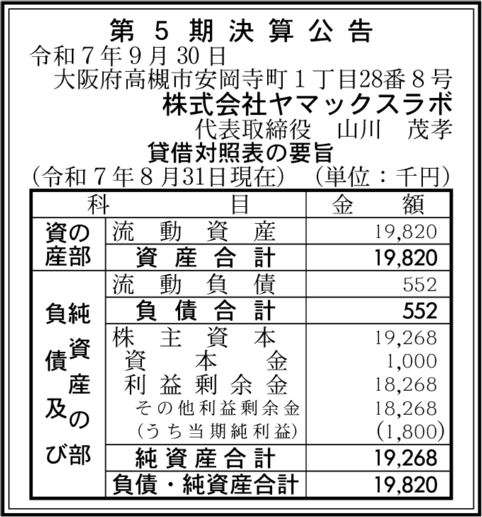 利益剰余金 | 1,826万8,000円 (+10.93%) |