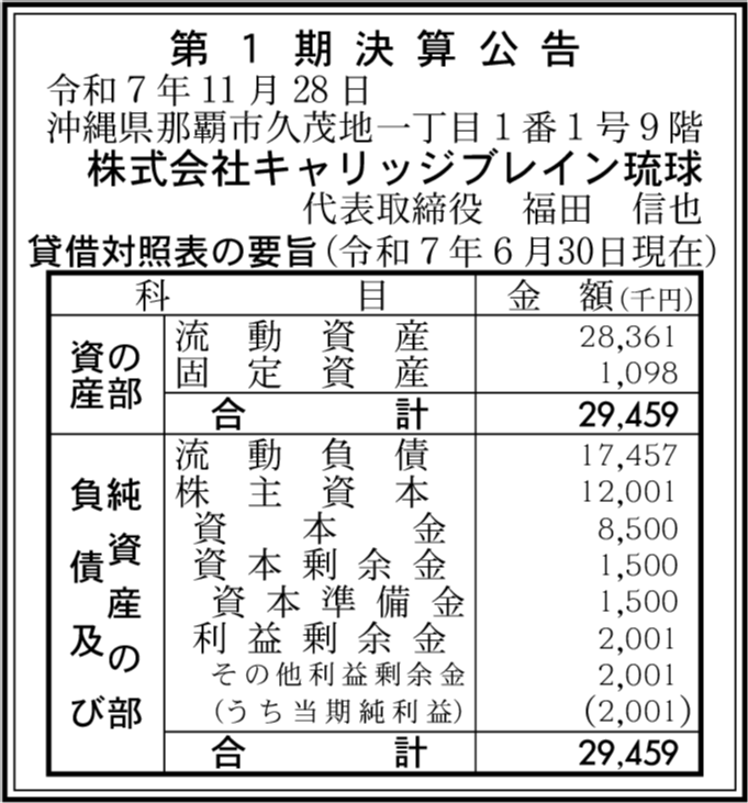 | 会社名 | 株式会社キャリッジブレイン琉球 |
