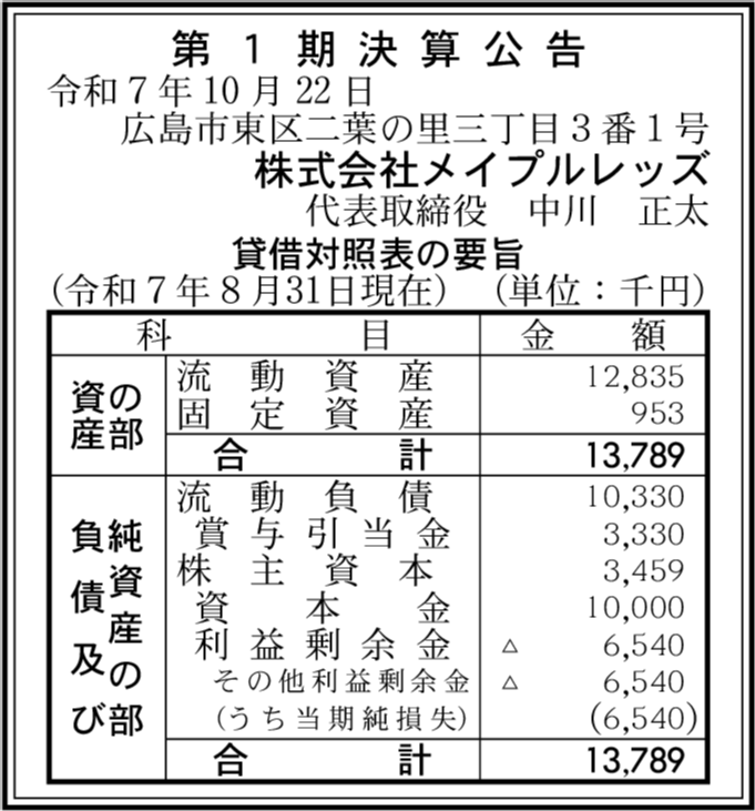 | 会社名 | 株式会社メイプルレッズ |
