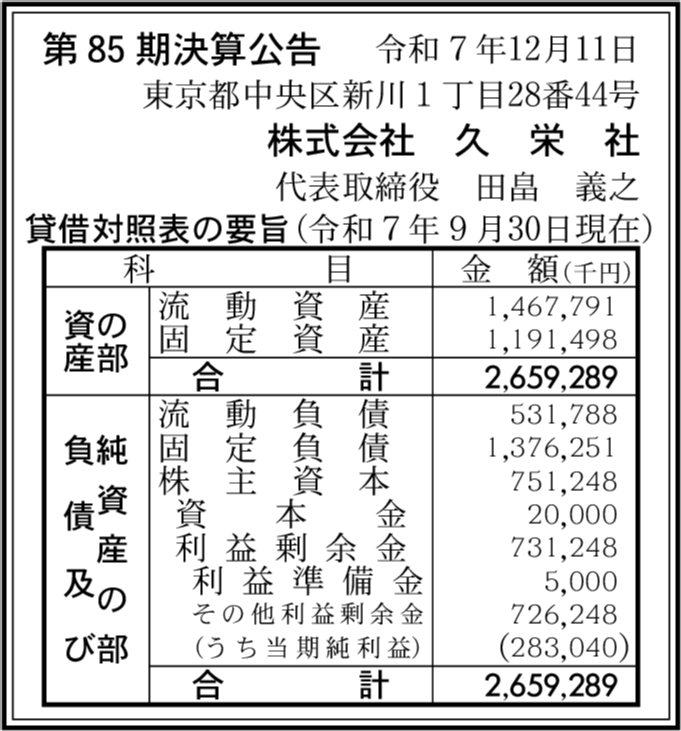 | 会社名 | 株式会社久栄社 |
