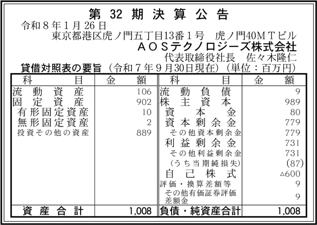 | 会社名 | AOSテクノロジーズ株式会社 |