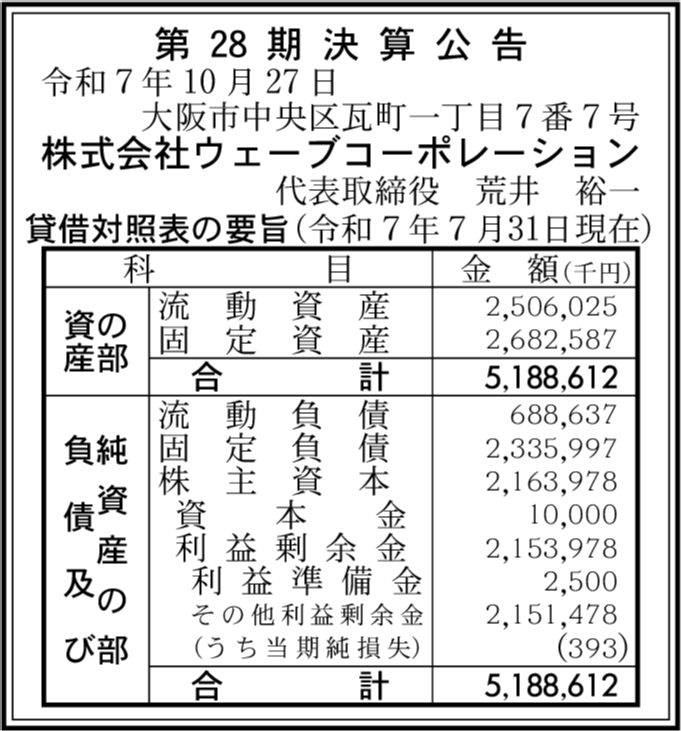 | 会社名 | 株式会社ウェーブコーポレーション |
