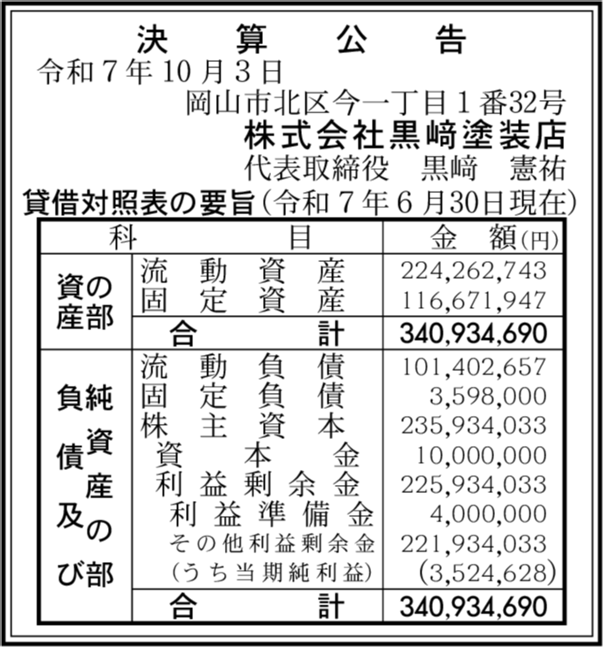 株式会社カワニシ 岡山県岡山市北区 【2025年6月期】 |