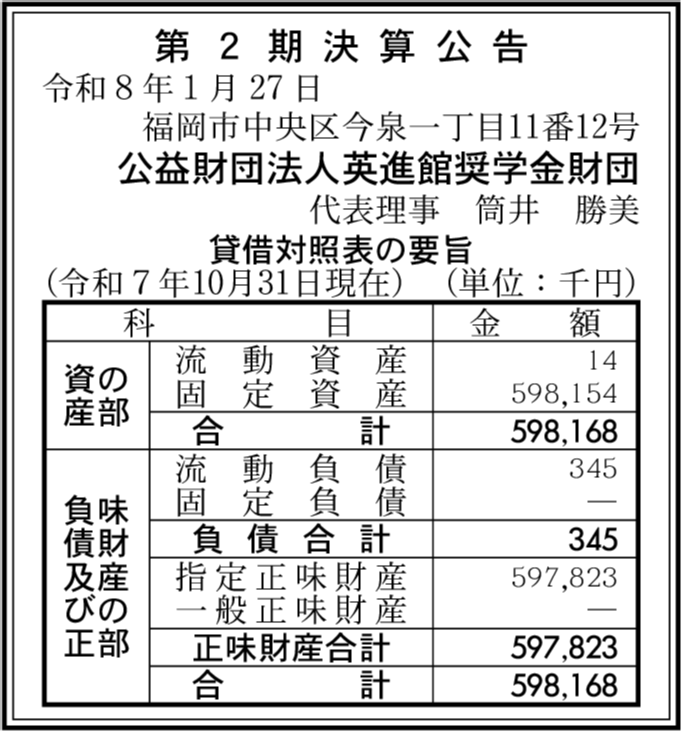 | 会社名 | 公益財団法人英進館奨学金財団 |