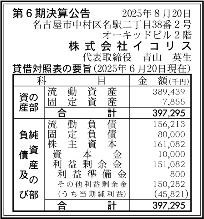アイアール株式会社 名古屋市中村区 【2025年6月期】 |