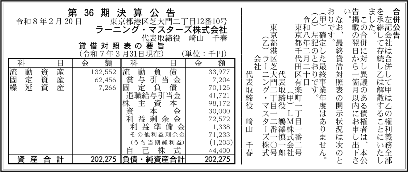 | 会社名 | ラーニング・マスターズ株式会社 |