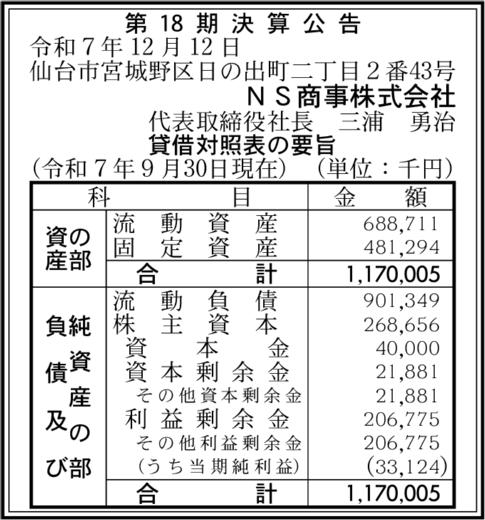 仙台エルピーガス株式会社 仙台市宮城野区 【2025年6月期】 |
