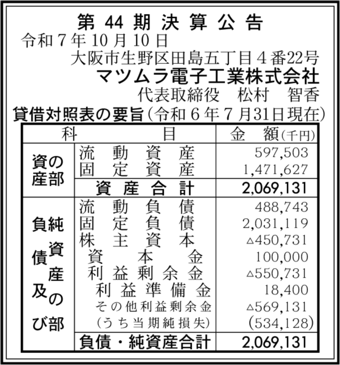 会社名 | マツムラ電子工業株式会社 |