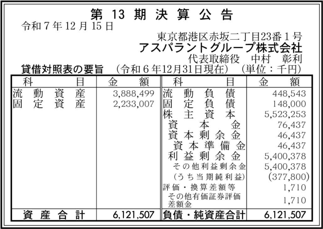 株式会社アスパラントグループSPC11号 東京都港区 【2025年3月期】 |