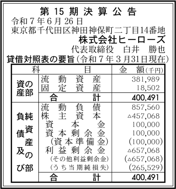 | 利益剰余金 | ▲6億5,706万8,000円 |