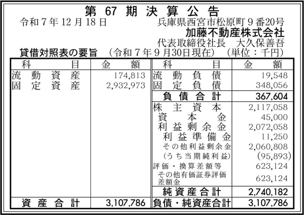 加藤SCアジアインベストメント株式会社 兵庫県西宮市 【2025年9月期】 |