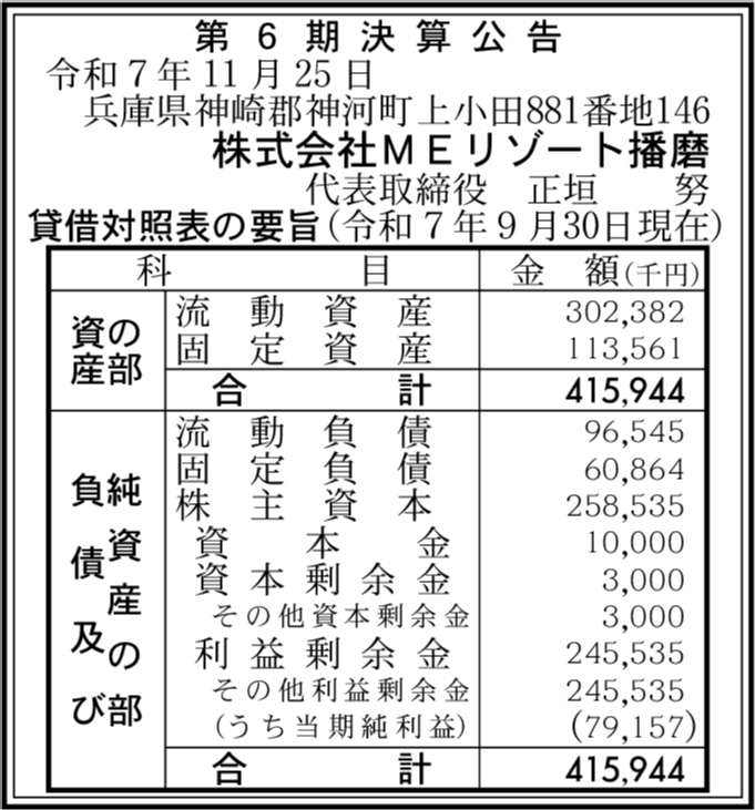 | 会社名 | 株式会社MEリゾート播磨 |