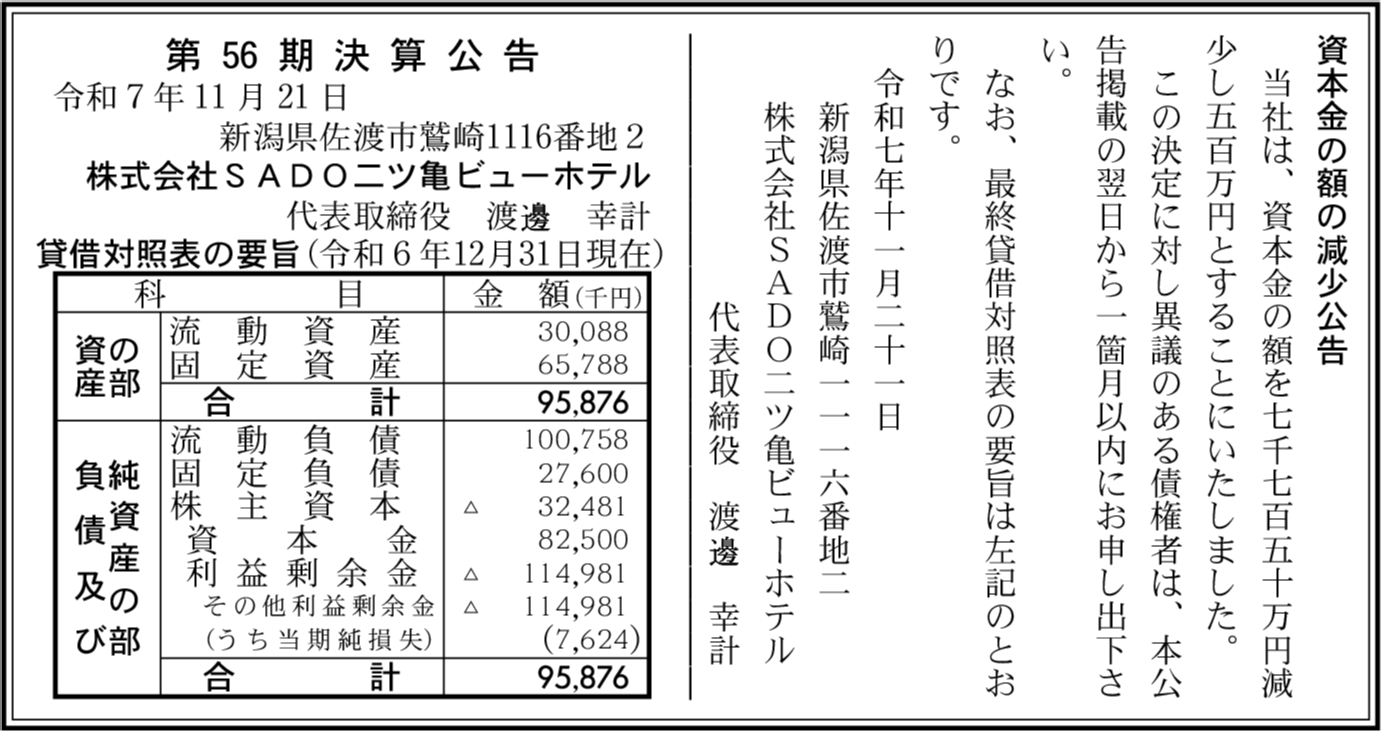 | 会社名 | 株式会社SADO二ツ亀ビューホテル |