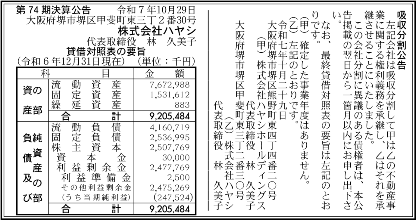 株式会社カワハラ 大阪府堺市堺区 【2025年6月期】 |