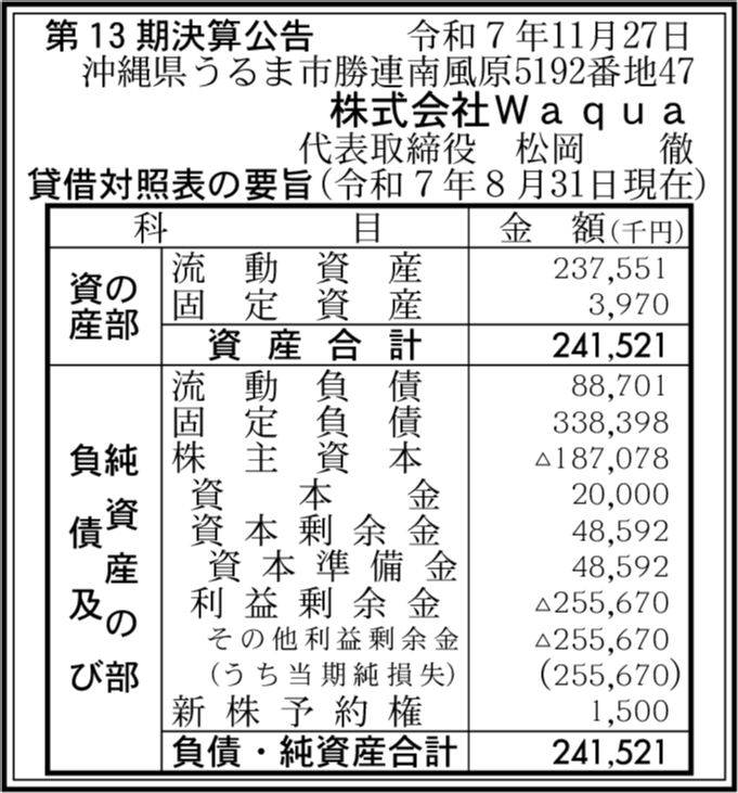 株式会社アクロラド 沖縄県うるま市 【2025年9月期】 |