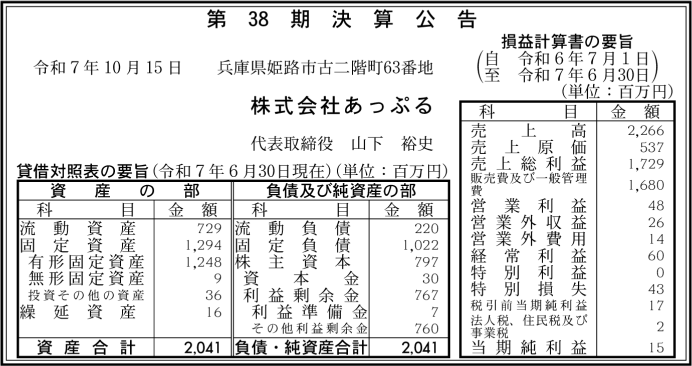 株式会社117 兵庫県姫路市 【2025年6月期】 |