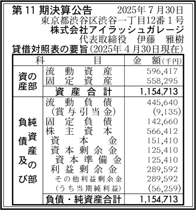 株式会社BGパートナーズ 東京都渋谷区 【2025年4月期】 |