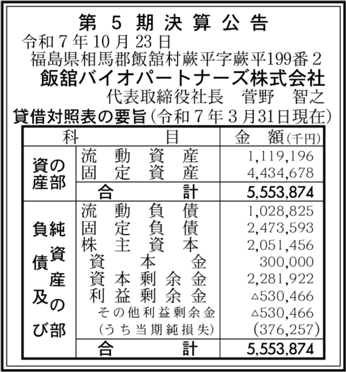 | 会社名 | 飯舘バイオパートナーズ株式会社 |