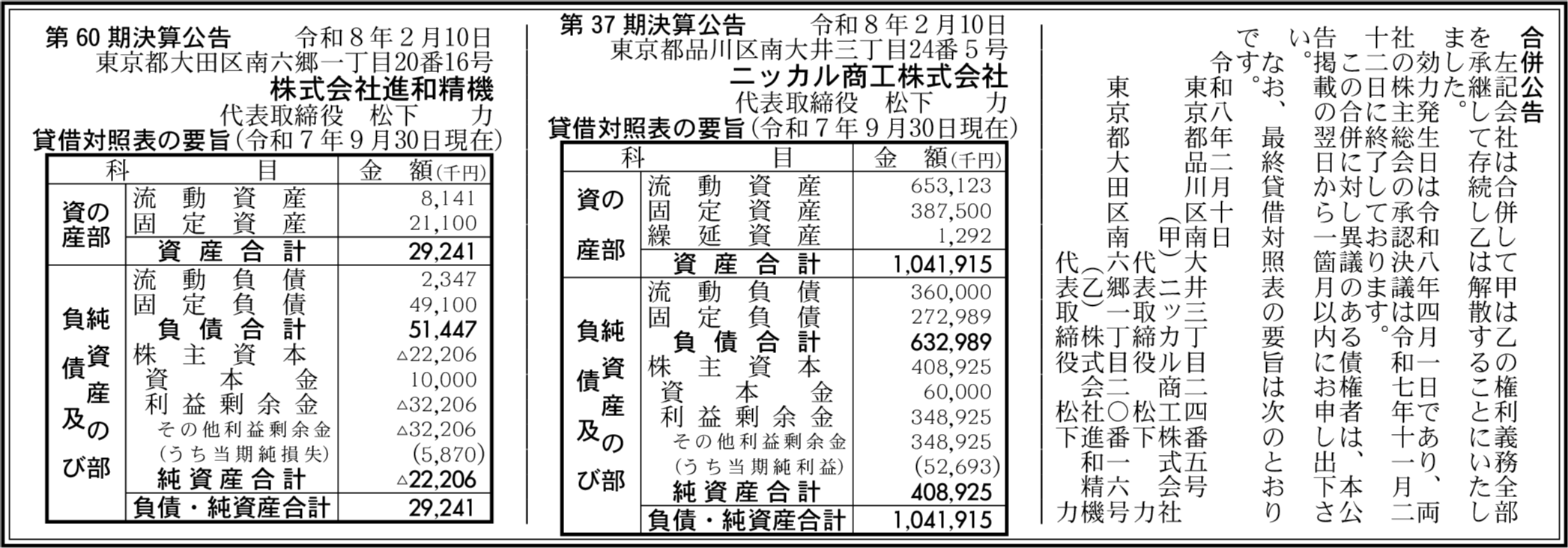 株式会社進和精機 東京都大田区 【2025年9月期】 |