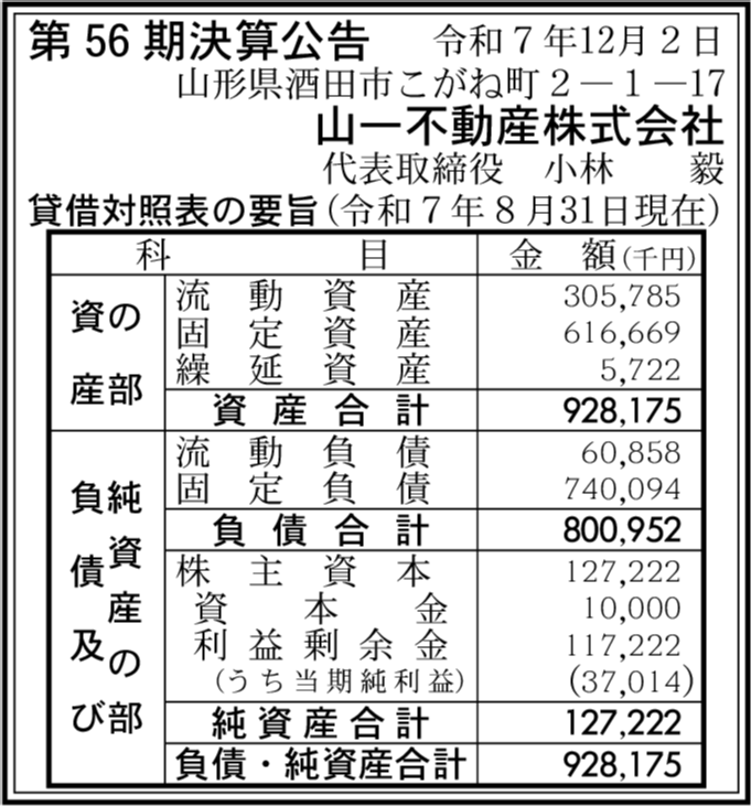 北日本オイル株式会社 山形県酒田市 【2025年3月期】 |