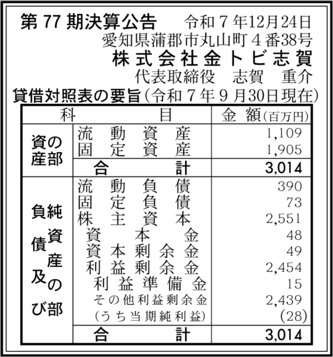 日本特殊合金株式会社 愛知県蒲郡市 【2025年3月期】 |