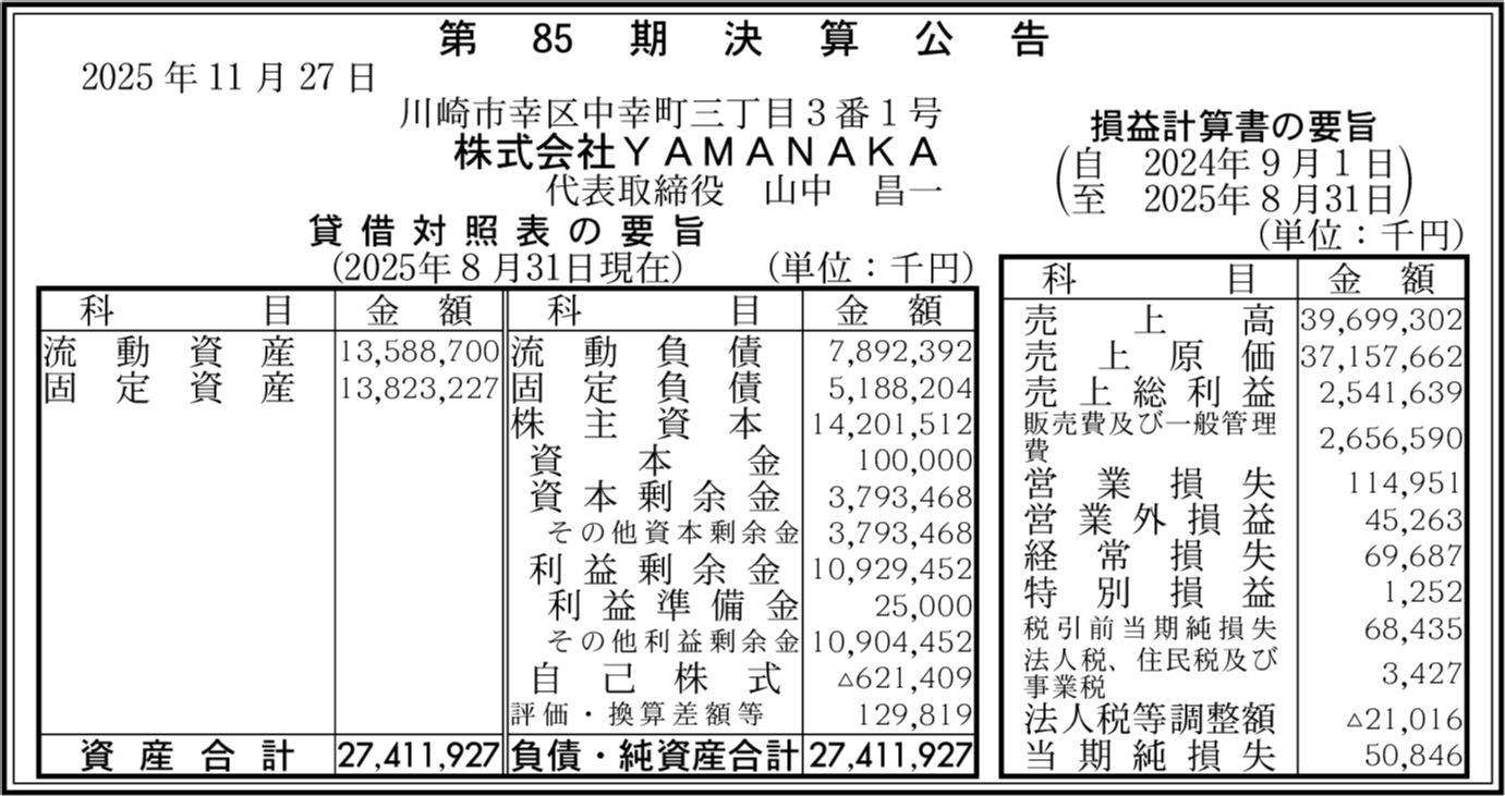 | 会社名 | 株式会社YAMANAKA |