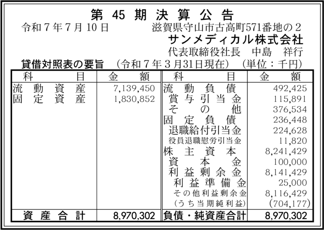 | 会社名 | サンメディカル株式会社 |