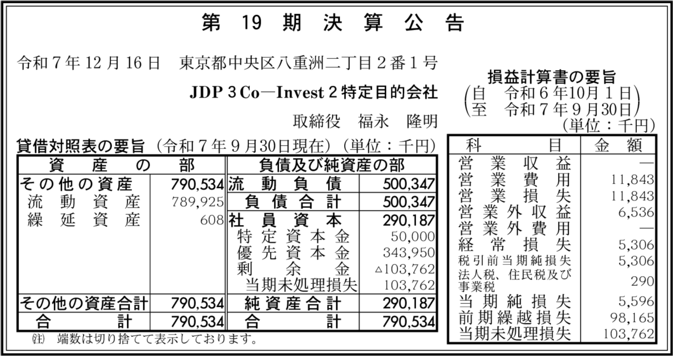 | 会社名 | JDP 3 Co-Invest 2特定目的会社 |
