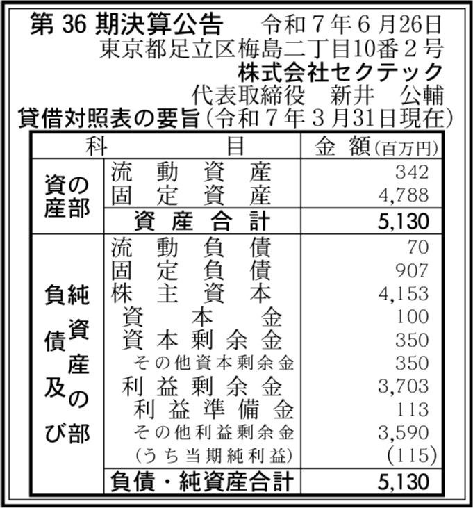 | 総資産 | 51億3,000万円 (+0.1%) |