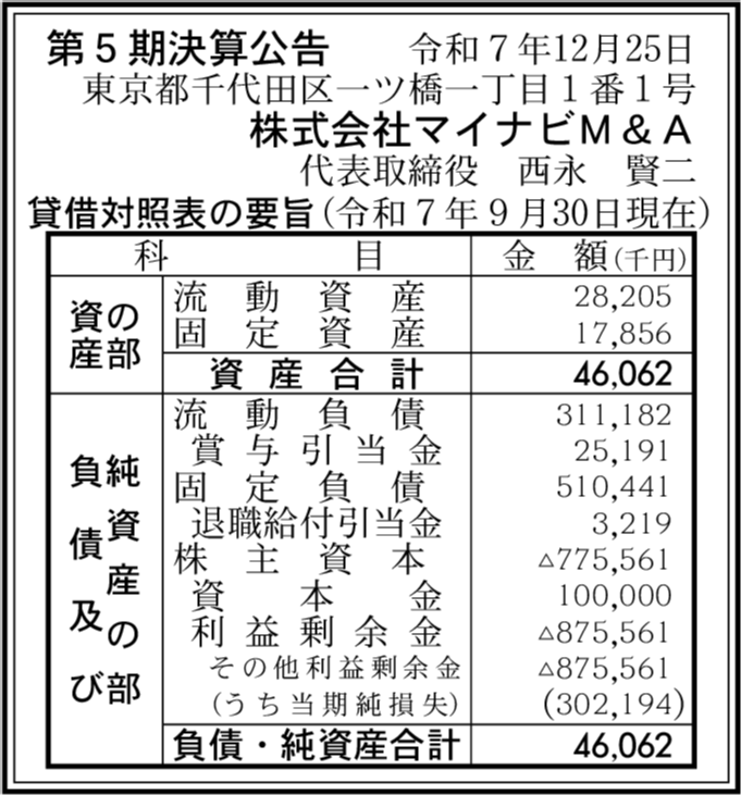 | 利益剰余金 | ▲8億7,556万1,000円 (赤字拡大) |