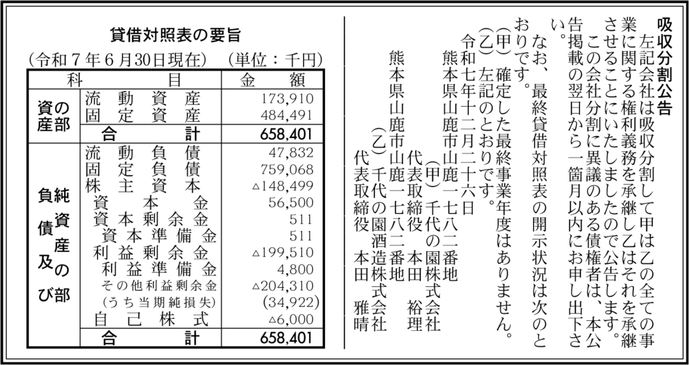 | 会社名 | 千代の園酒造株式会社 |