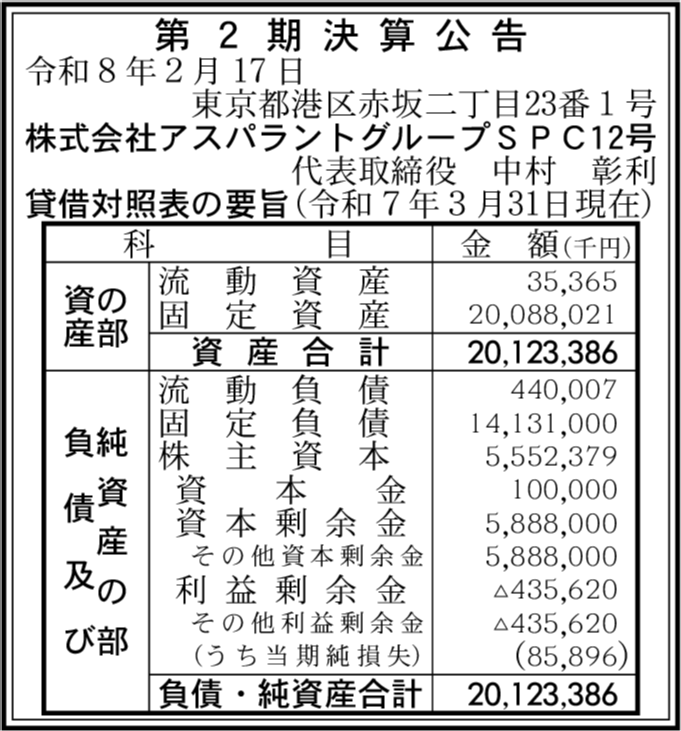 | 会社名 | 株式会社アスパラントグループSPC12号 |