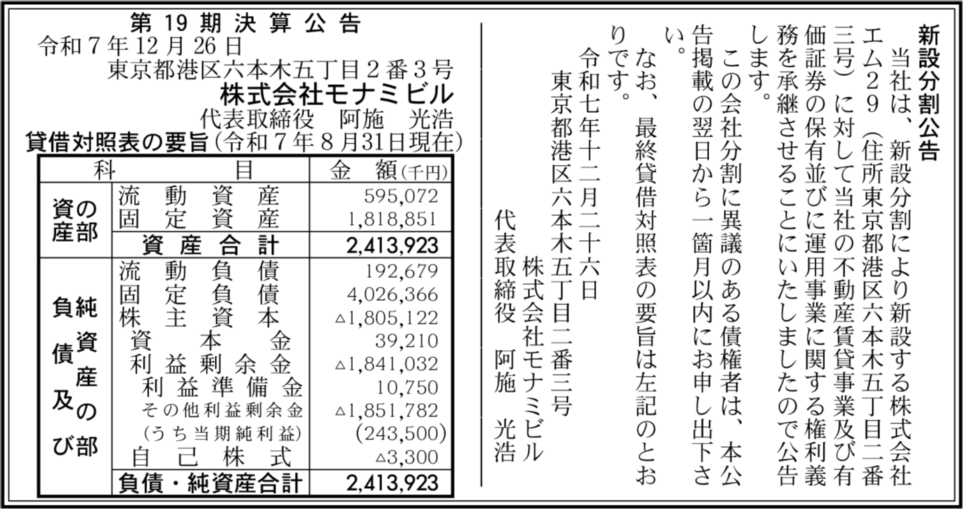 | 利益剰余金 | ▲18億4,103万2,000円 (赤字転換) |