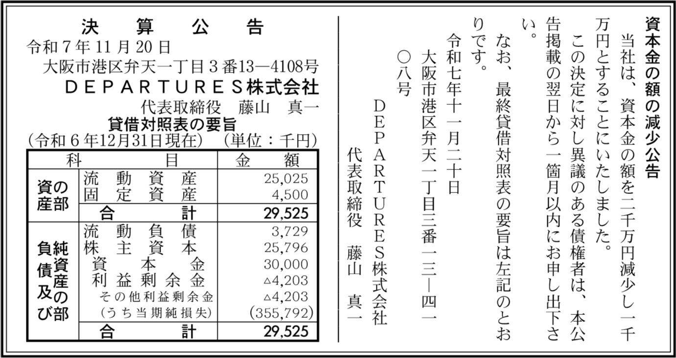 | 会社名 | DEPARTURES株式会社 |