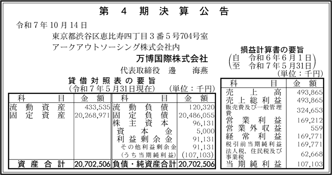 株式会社BLY PROJECT 東京都港区 【2025年4月期】 |