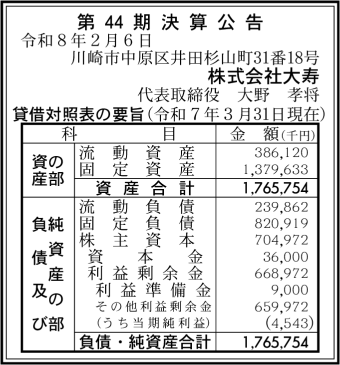 大野 孝将 大野 孝将 さんが代表の会社を検索 |
