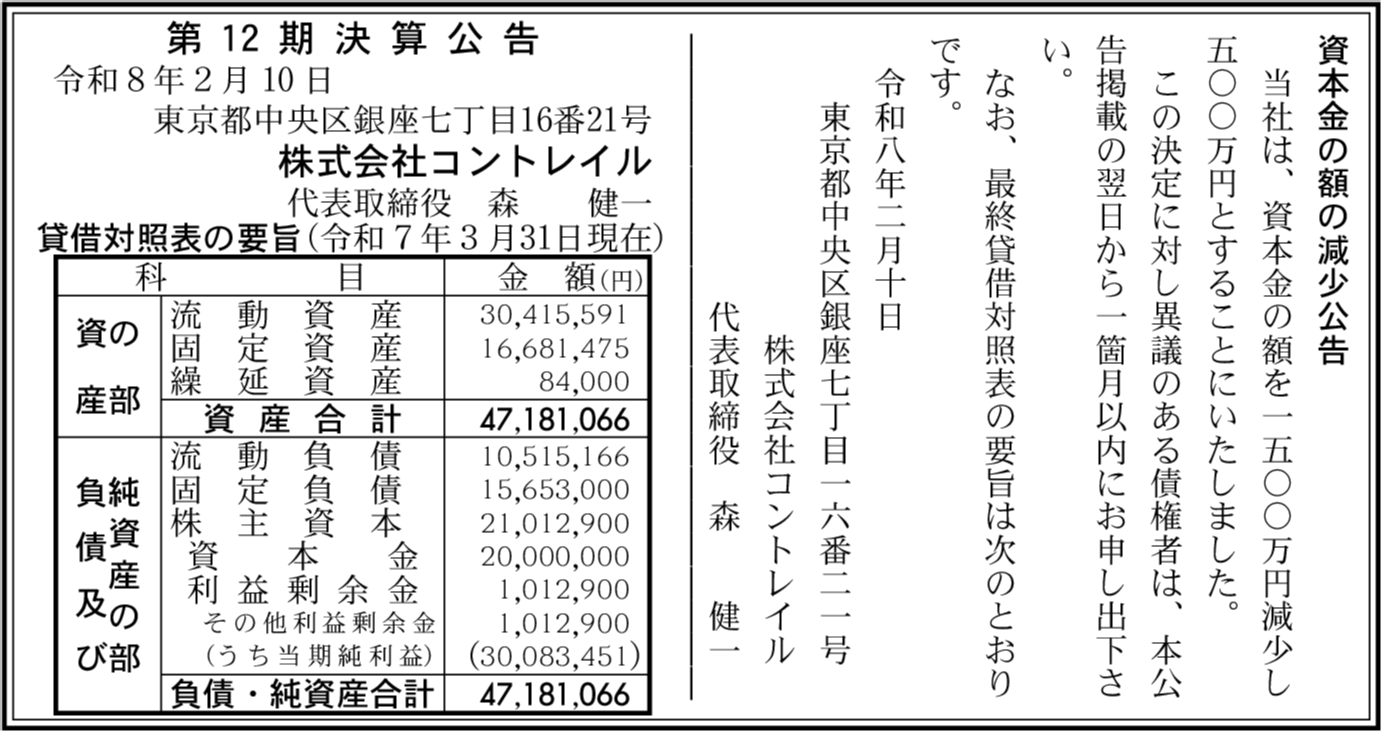| 会社名 | 株式会社コントレイル |