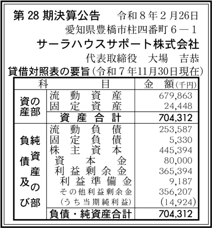 | 会社名 | サーラハウスサポート株式会社 |